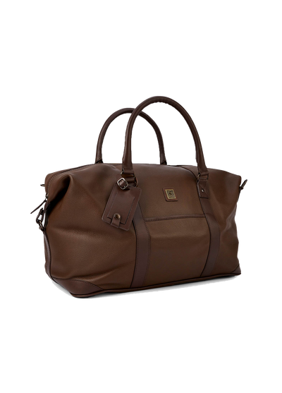 Large leather soft weekend bag with handles and a shoulder strap,
