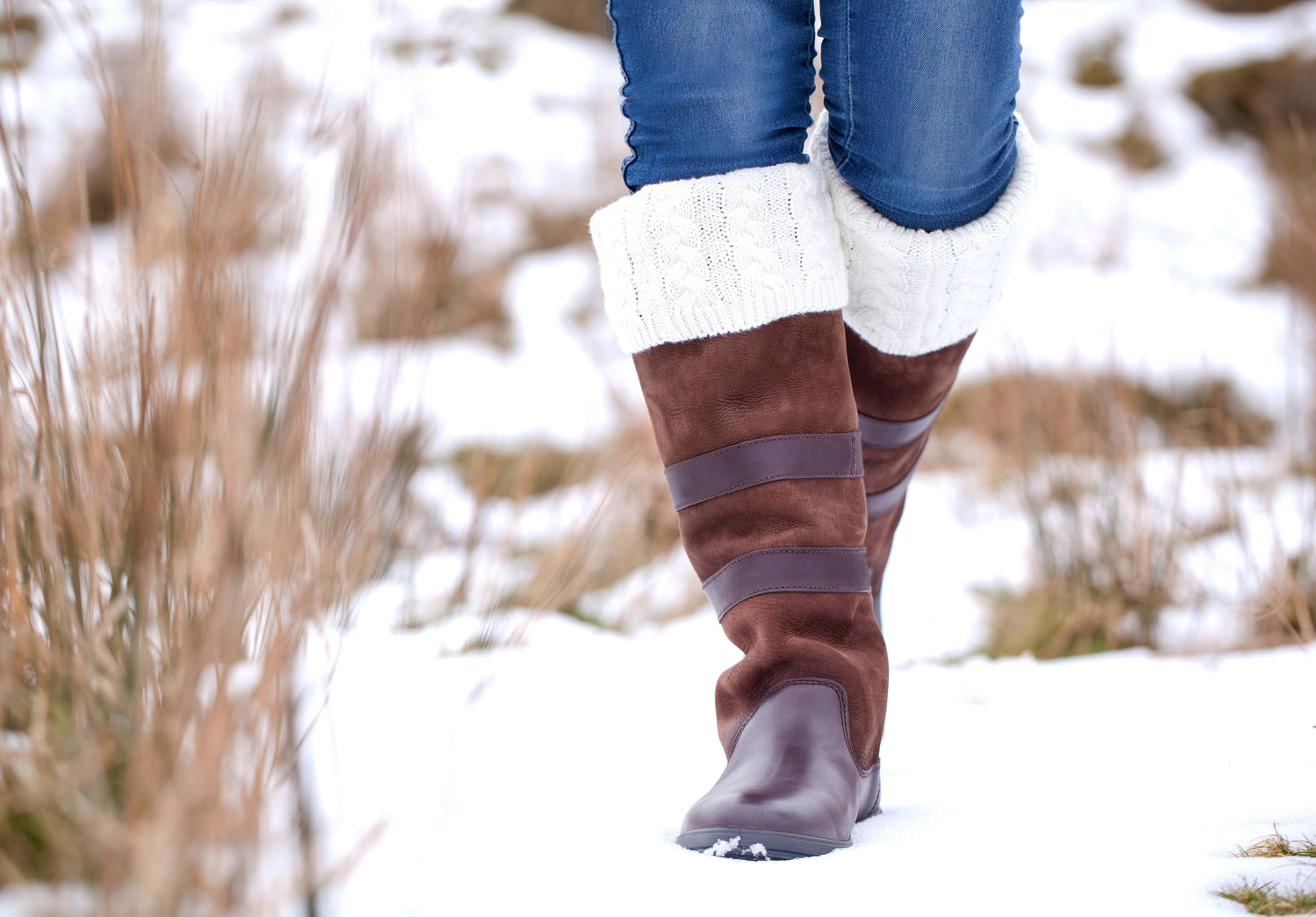 Cotton mix long socks with fold down cable knit decorative top for country boots. Machine washable on wool cycle up to 40ºc